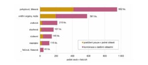 - ve více oblastech zároveň se postižení projevovalo u 609 tisíc lidí se zdravotním postižením